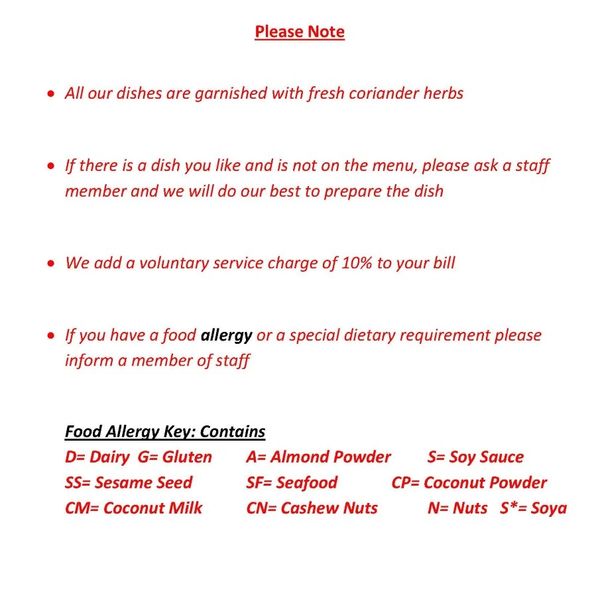Mon to Sat: Lunch: 12pm-2.30pm Dinner: 5.30pm-10.30pm Sunday: Closed